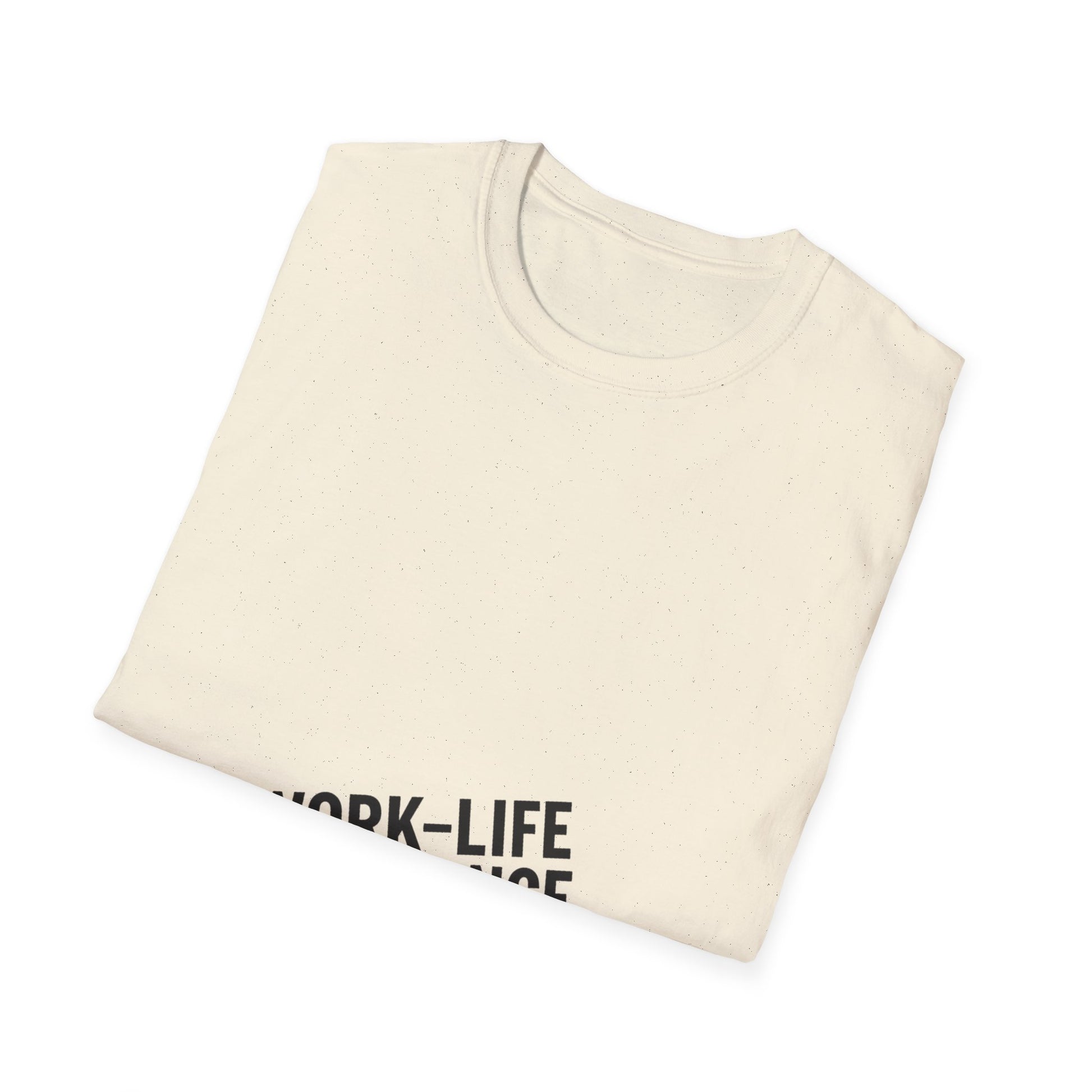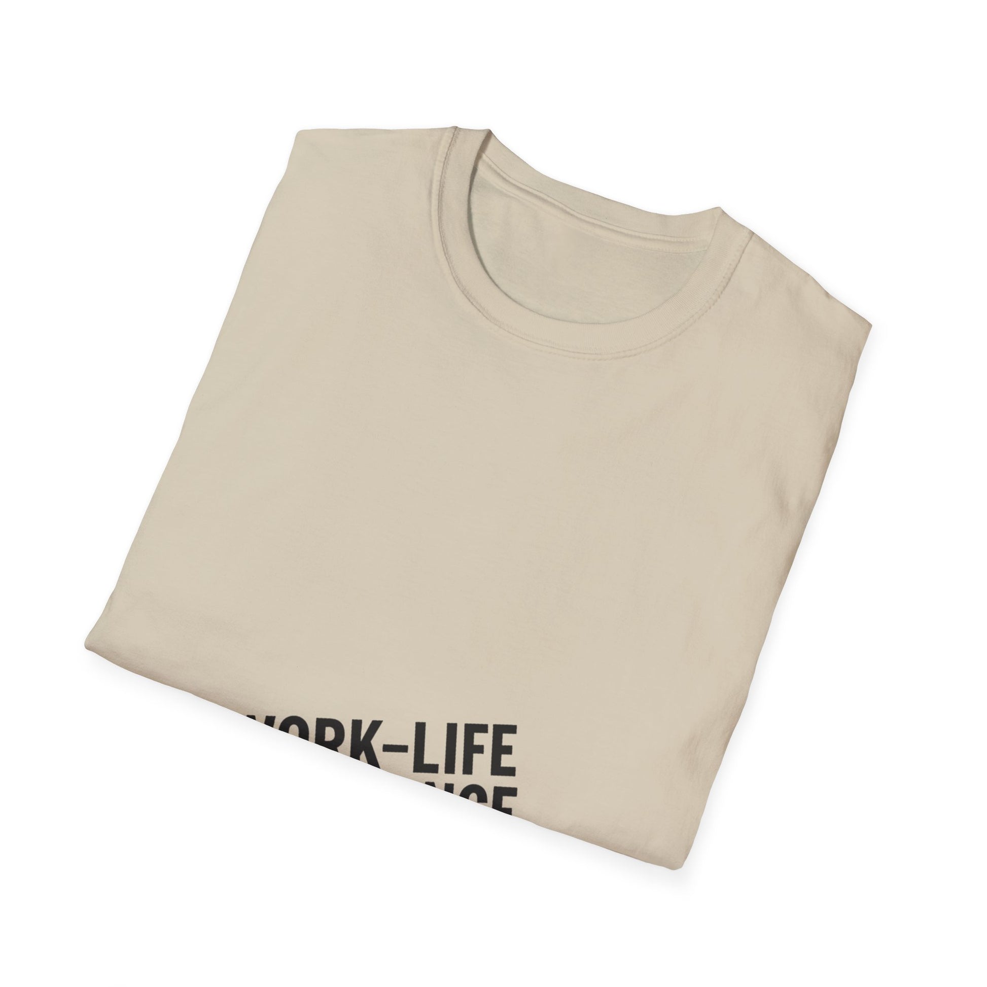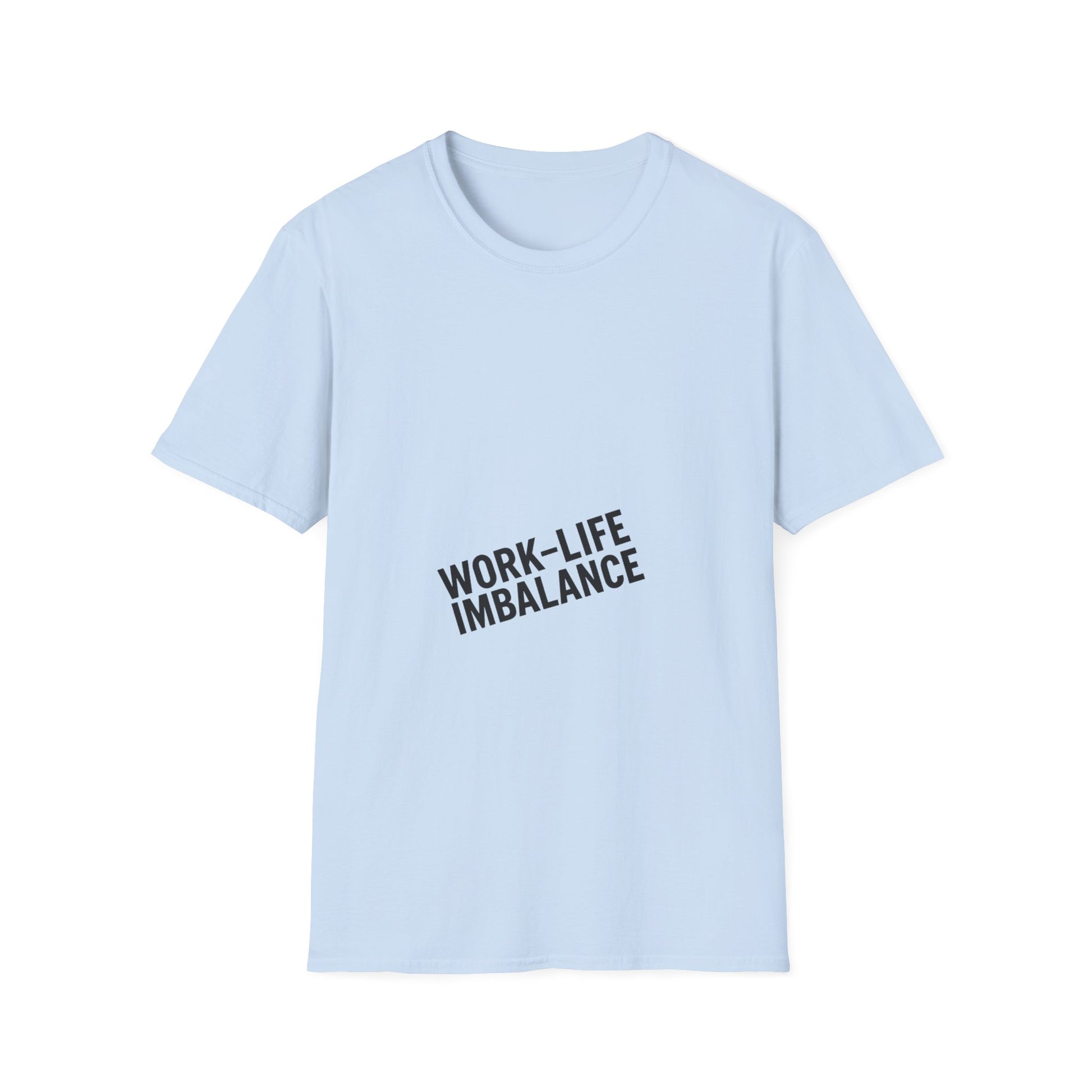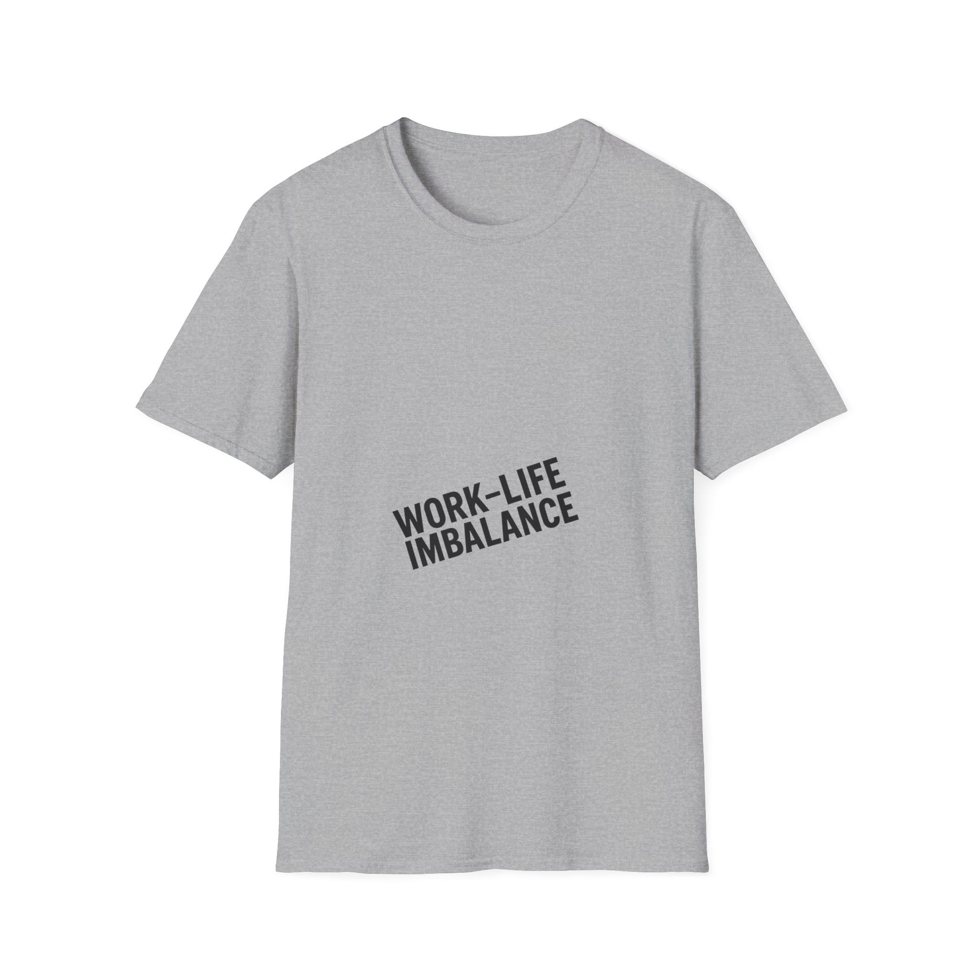 "Minimal centered slogan 'Work-Life Imbalance' in bold uppercase black text on cream background, slightly tilted letters to look unbalanced"